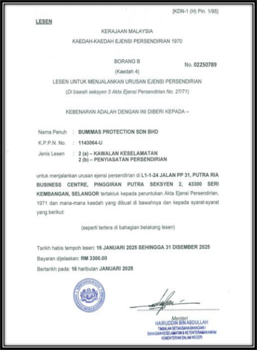 Bumimas Protection provides exceptional 24/7 security for our office building. Their guards are professional, friendly, and always alert. We’ve seen a noticeable improvement in safety and peace of mind for our staff and tenants.