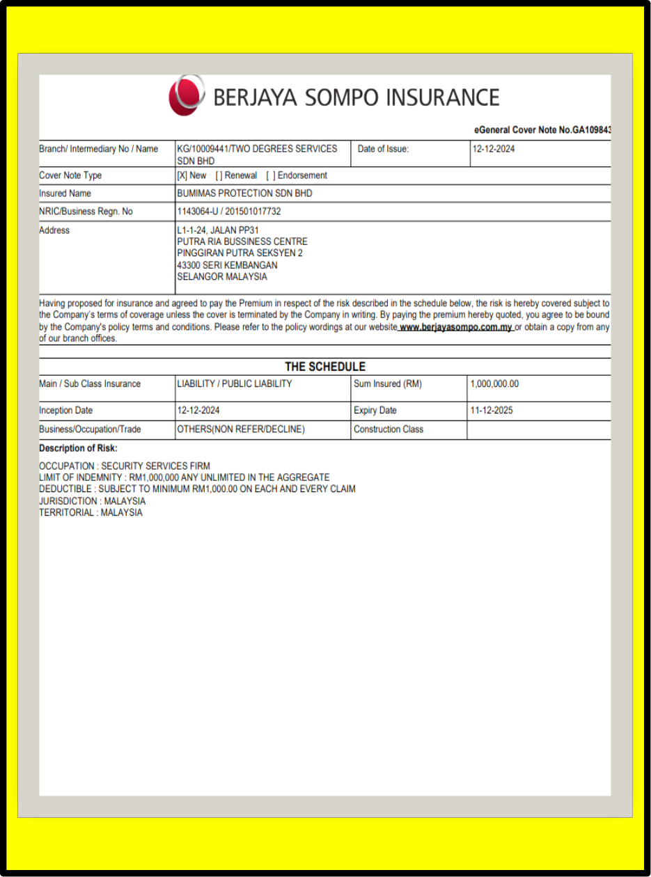 Our neighbourhood feels safer than ever thanks to Bumimas Protection’s dedicated patrol team. They are punctual, approachable, and quick to respond to any concerns. We highly recommend their services.